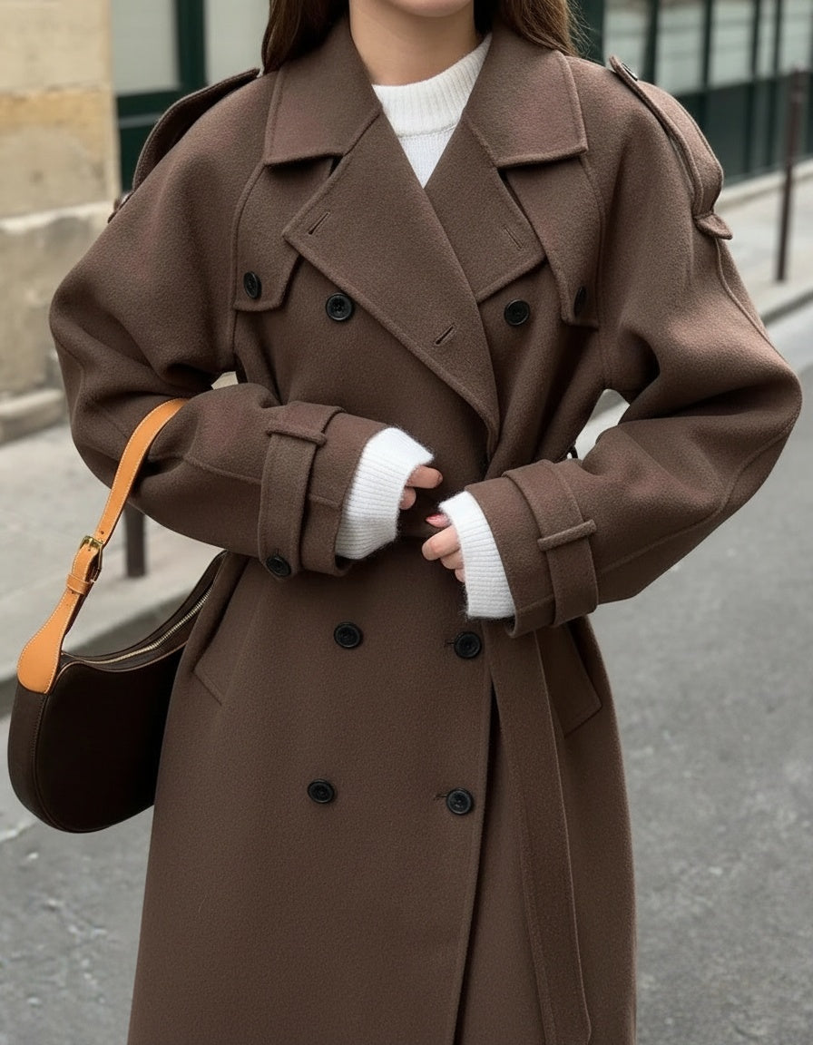 Ein Meisterwerk der Schlichtheit – der Marlene Mantel verkörpert moderne Eleganz in ihrer reinsten Form. Mit seiner fließenden, leicht übergroßen Silhouette vereint er Struktur und Weichheit auf harmonische Weise. Perfekt für elegante Auftritte im Alltag oder stilvolle Momente am Wochenende – ein Mantel, der jede Garderobe veredelt.