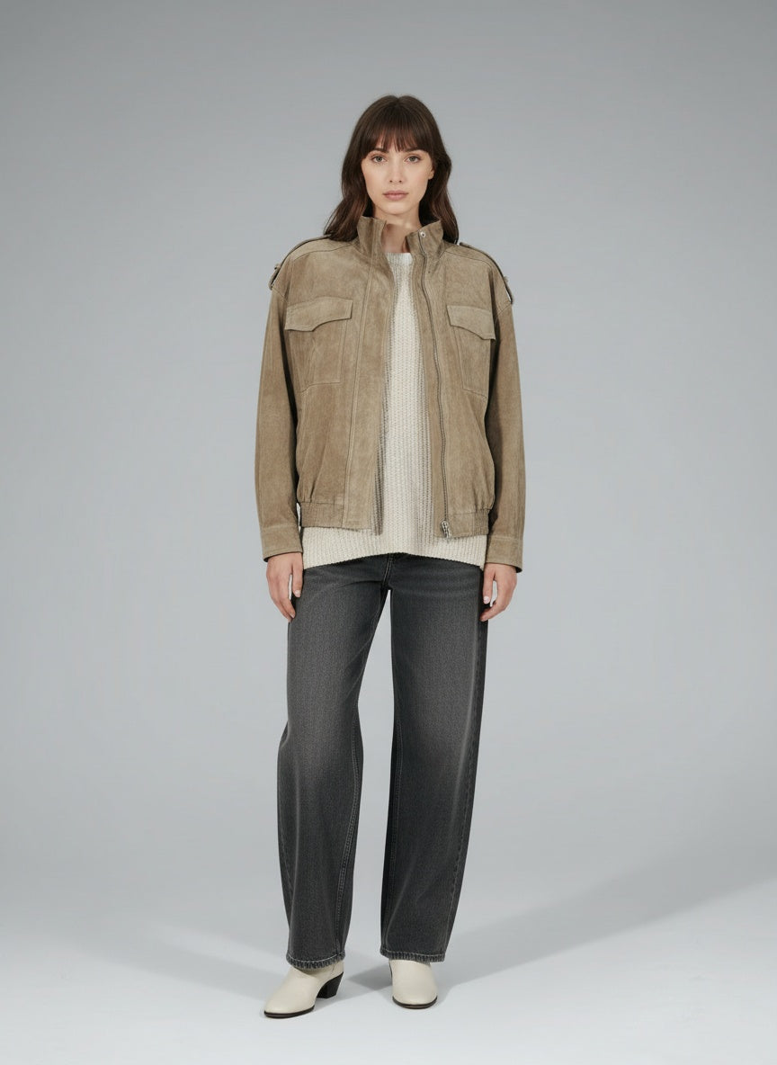 Full body view of the model wearing Sophia™ | Wildlederjacke Marble Sand